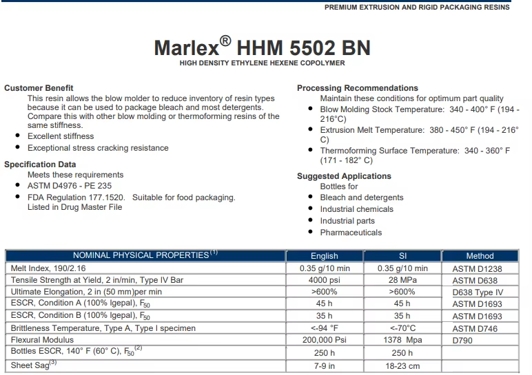 Moldeo, Grado de película soplada, Grado de moldeo por soplado, Food contact grade Blowing gradeGrado