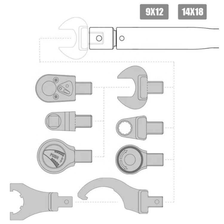 Cabeza intercambiable, mango de torsión ajustable, Escala de ventana