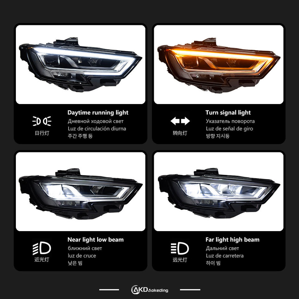 Faro Delantero LED para Audi A3 2013-2016, Faros Delanteros S3 con Luces de Circulación Diurna, Señal de Giro, Luz Alta, Ojo de Ángel, Lente de Proyector