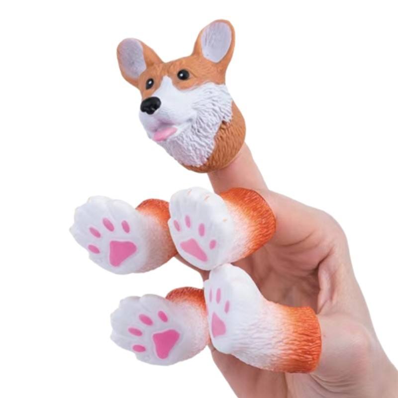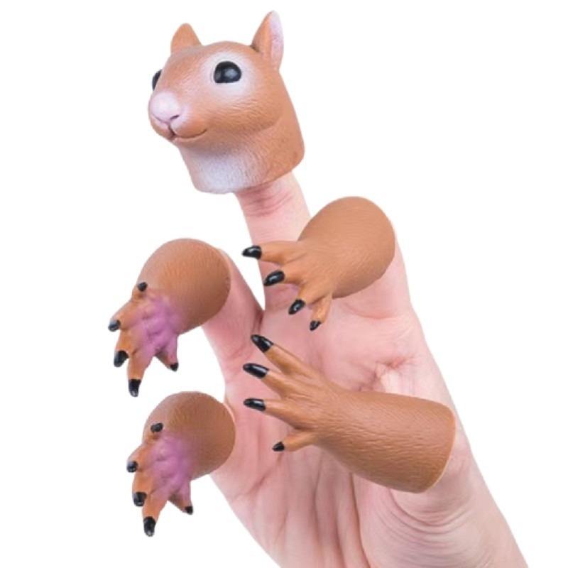 Set de Marionetas de Mano y Dedo de Animales de Vinilo (Esquilo, Panda, Perro, Gato Negro) para Niños, Accesorio de Escenario