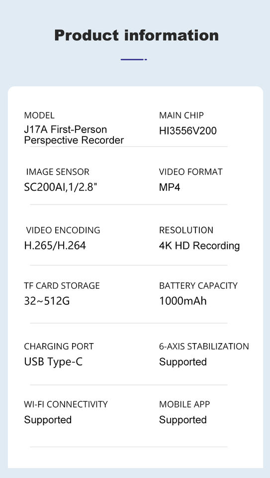 Cámara Deportiva con Soporte para la Cabeza, Grabación de Video, Videocámara Vlog, Estabilizador de Gimbal de 6 Ejes, Control por Aplicación Wi-Fi