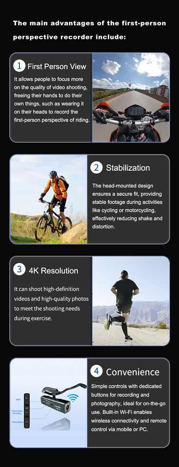 Cámara de Video Montada en la Cabeza con Estabilizador de Gimbal de 6 Ejes y Control Remoto para Actividades al Aire Libre y Reuniones en Casa