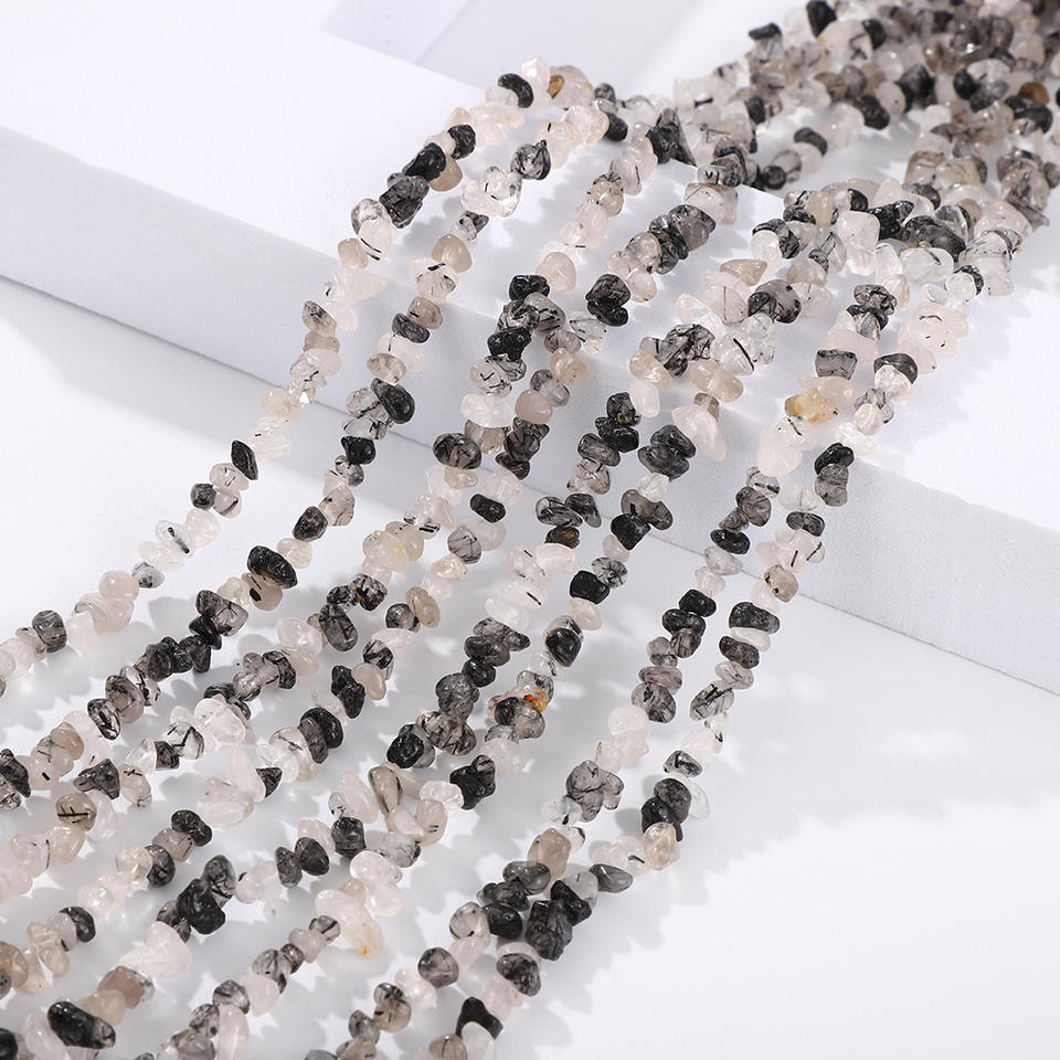 Cristal curativo Negro Cuarzo rutilado Forma irregular Piedras de chip naturales Cuentas sueltas para la fabricación de joyas