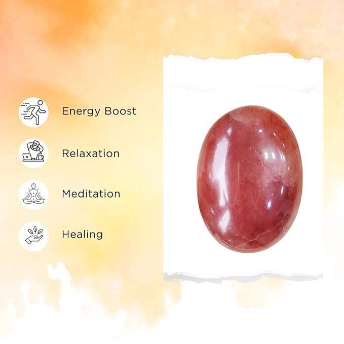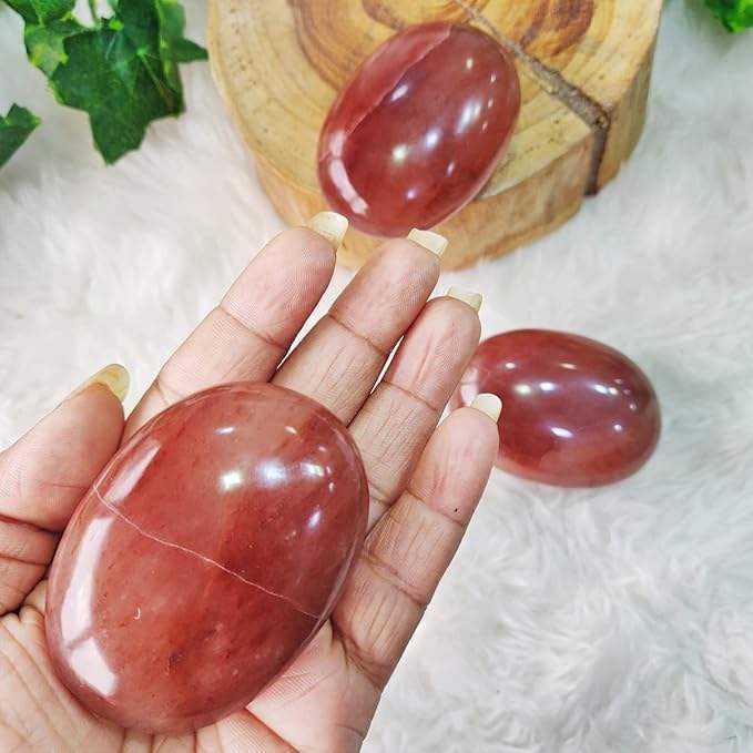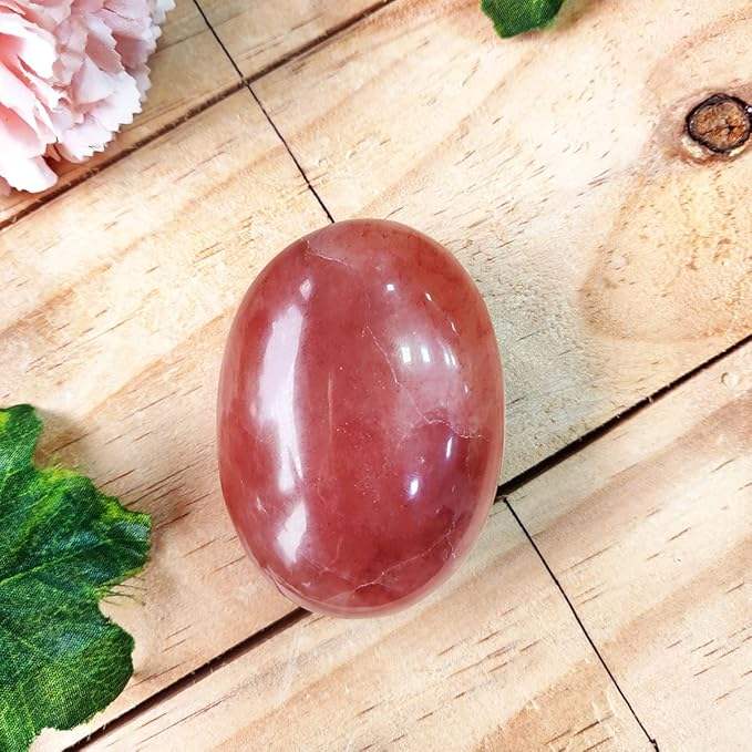 Piedra de Palma de cuarzo de fresa curativa Piedra preciosa pulida para energía positiva y calma-Piedras de Palma de cristal a granel