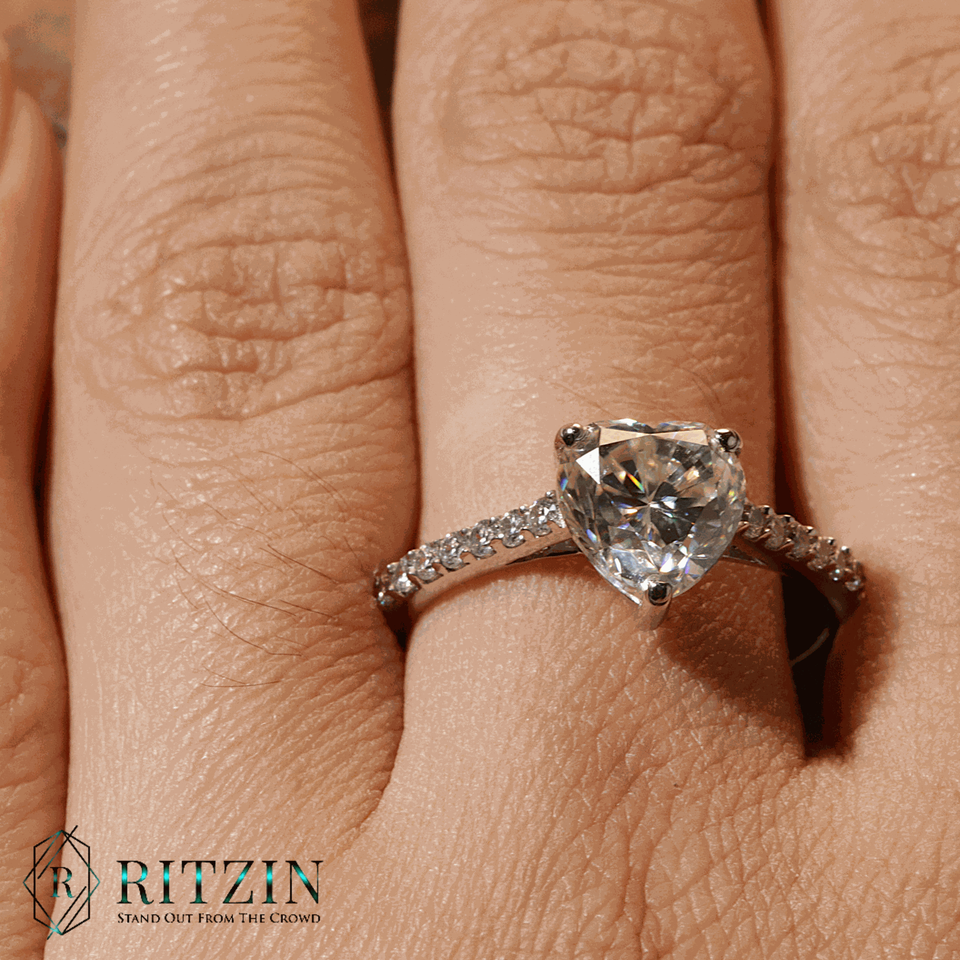 Corazón y diamante de corte redondo solitario con acento anillo de compromiso para mujer