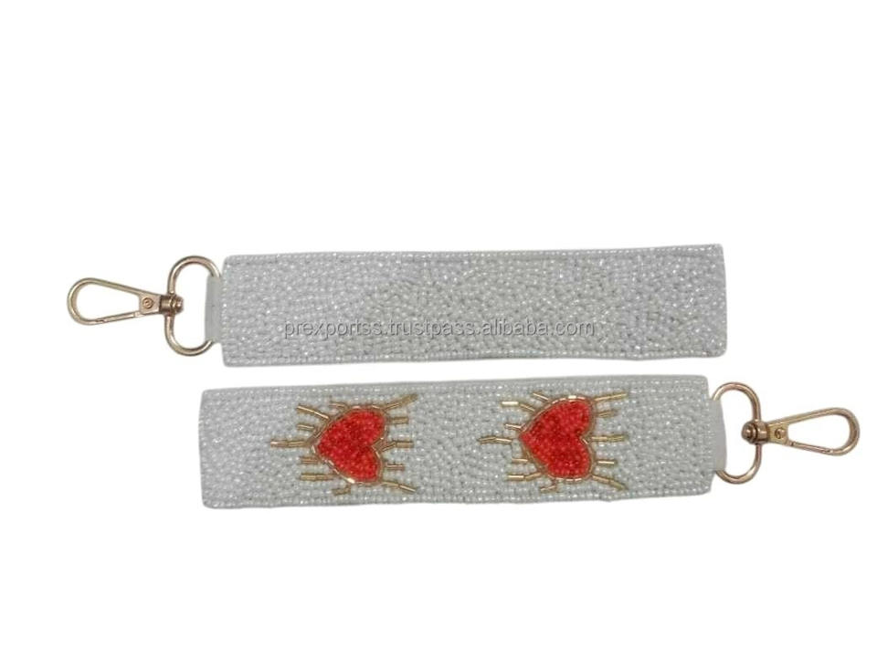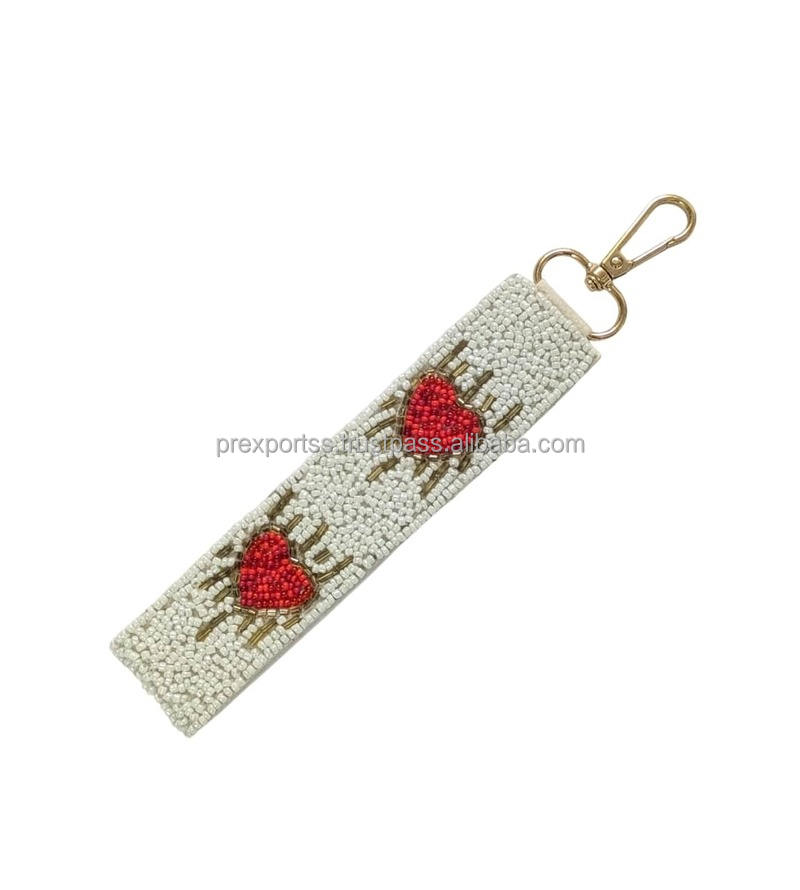 Llavero con Cuentas Bordadas en Forma de Corazón, Rojo y Blanco, Adorno para Bolso de Muñeca, Anillo Hecho a Mano, Regalo de San Valentín, Accesorio Bonito, Ecológico y Duradero
