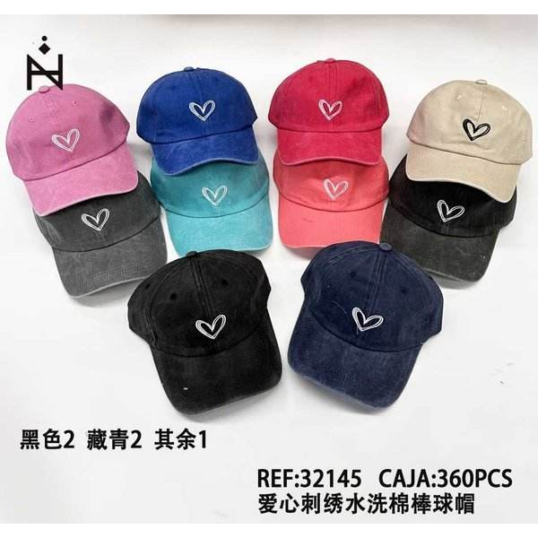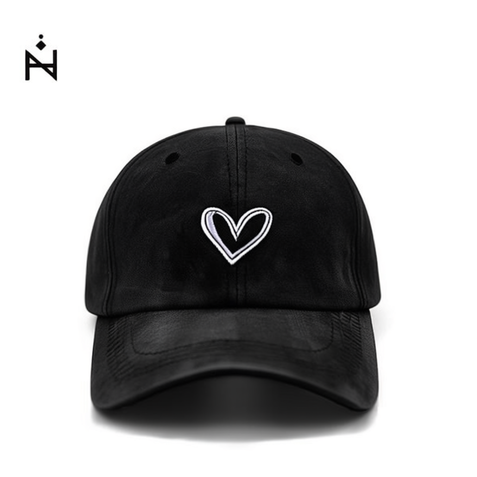 Gorra de Béisbol de Algodón Lavado con Bordado de Corazón, Ajustable de 58-60 cm, Unisex, Casual, de 6 Paneles