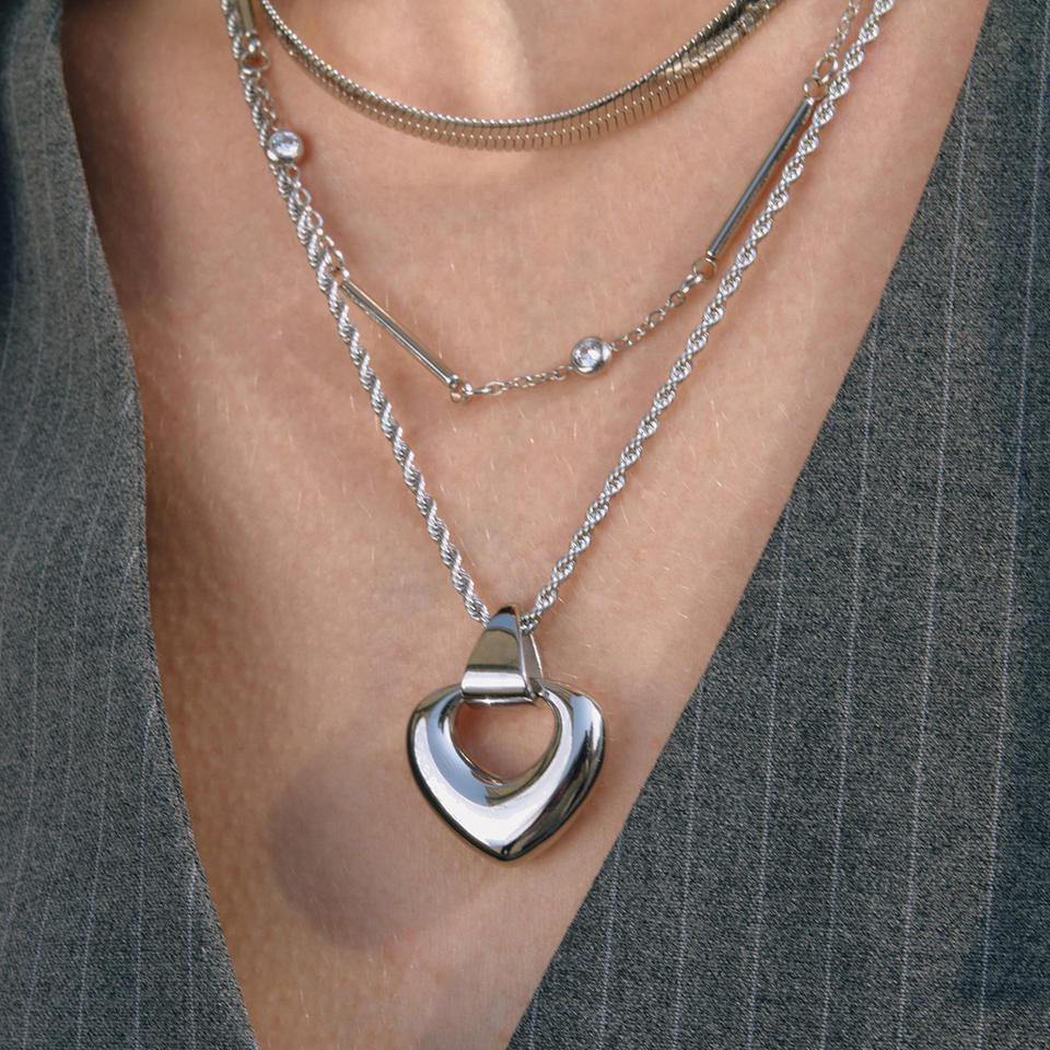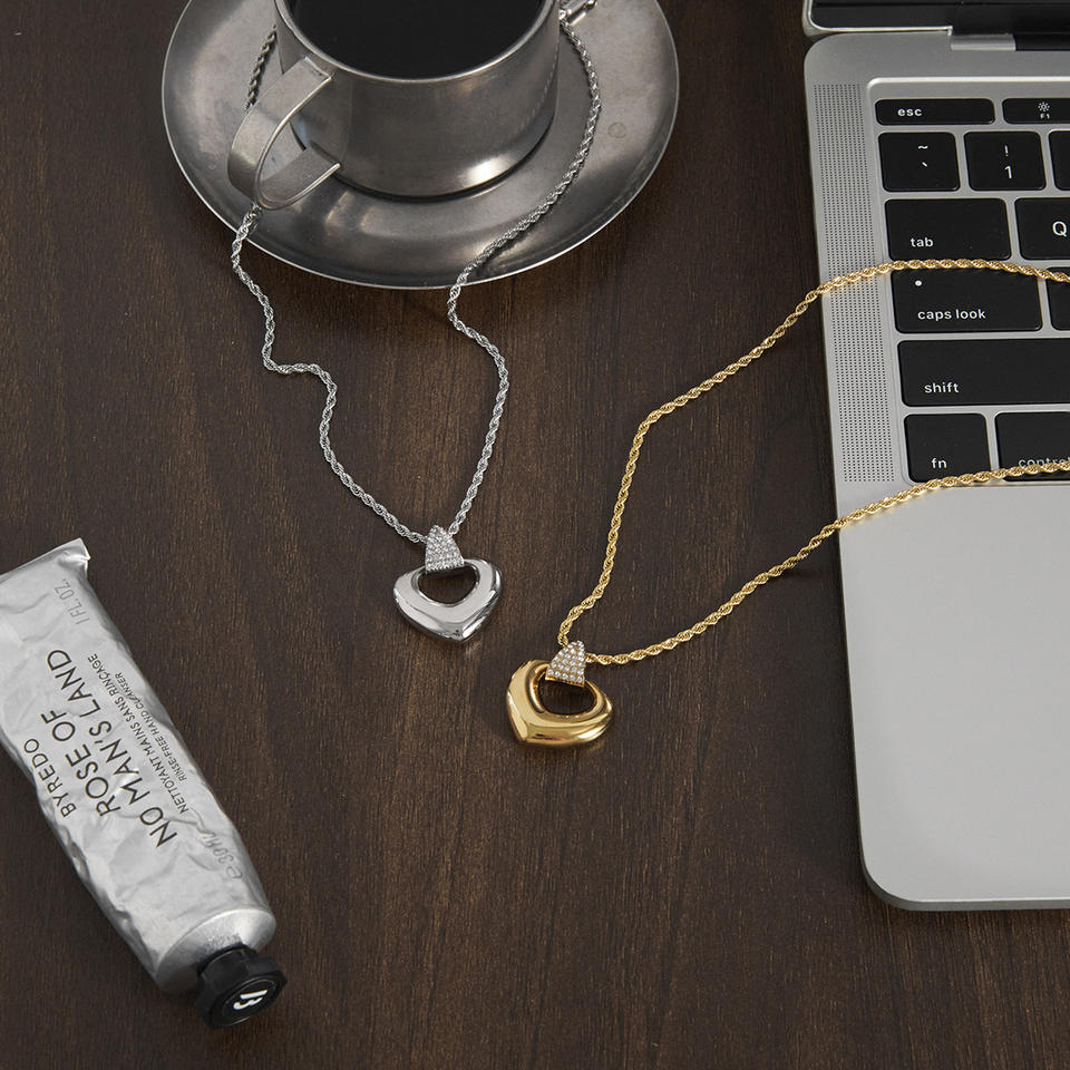 Collar con colgante de corazón de acero inoxidable con diamantes de imitación y cadena trenzada, regalo de joyería para mujer