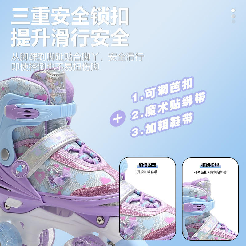 Patines en Línea Ajustables para Niñas Heart Princess, Suela de TPR, Material EVA, Lavanda, Morado, Rosa, Ruedas de Una Sola Fila