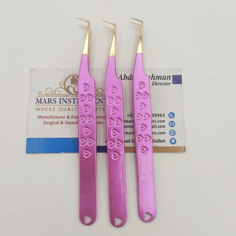 Pinzas de extensión de pestañas con puntas de fibra duraderas con tema navideño Rosa metálico con forma de delfín con estampado de corazón de acero inoxidable
