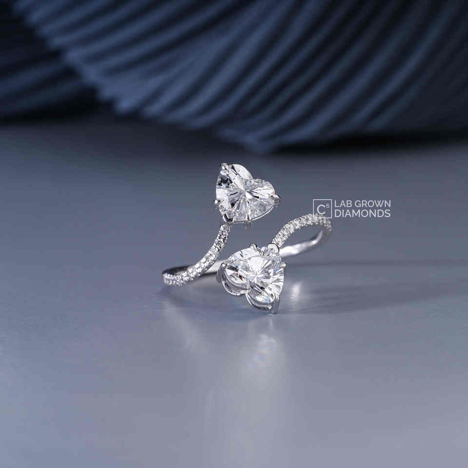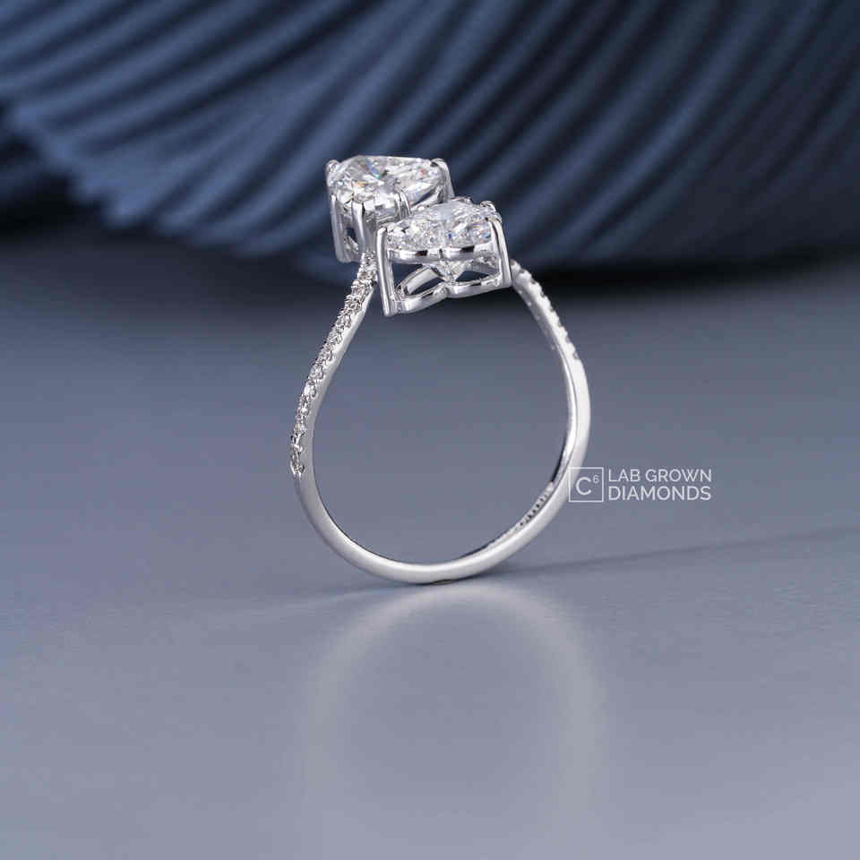 Anillo de Diamante Cultivado en Laboratorio con Corte Corazón y Redondo, Plata de Ley S925, Metal Blanco de Lujo, 28 Piezas, 2.1ct, Claridad EF, Regalo para Mujer