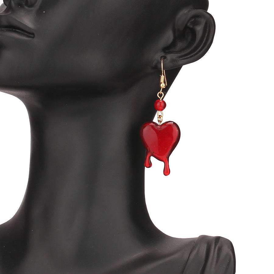 Pendientes colgantes con forma de corazón y gota de sangre para mujer, joyería de moda para fiesta, diseño de corazón rojo de aleación de zinc