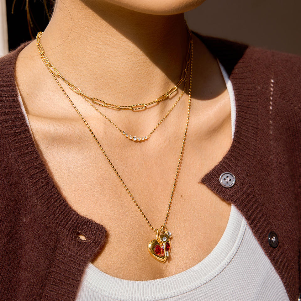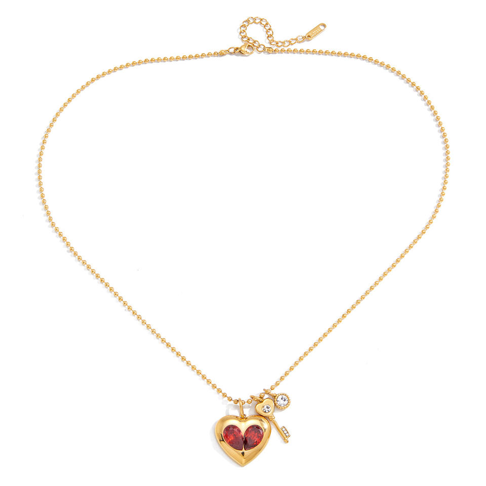 Collar con colgante en forma de corazón con cristal rojo y colgante de llave en tono dorado para mujer, joyería de regalo