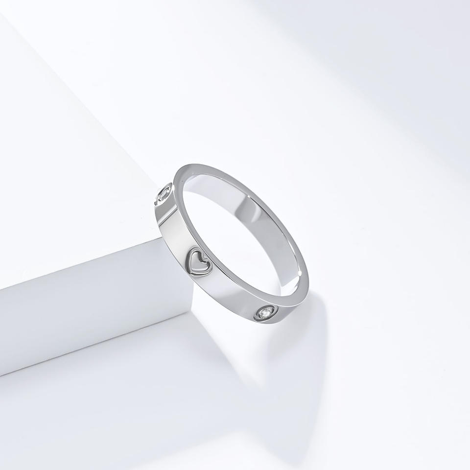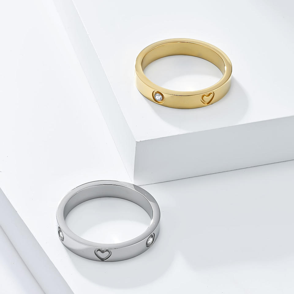 Anillo de acero de titanio con forma de corazón y diamantes para mujer, color plata y oro, joyería de moda para regalo.