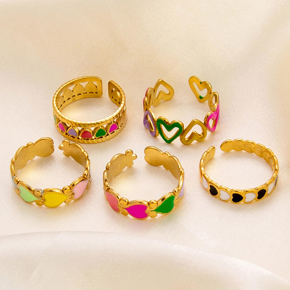 Anillo Abierto Chapado en Oro con Forma de Corazón, Joyería de Moda para Mujer, Regalo Estilo INS