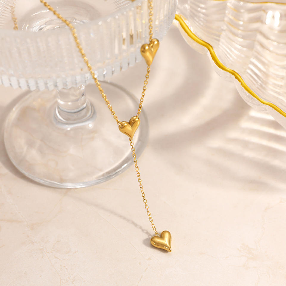 Collar con colgante asimétrico minimalista en forma de corazón, chapado en oro, con cadena en Y, para regalo.