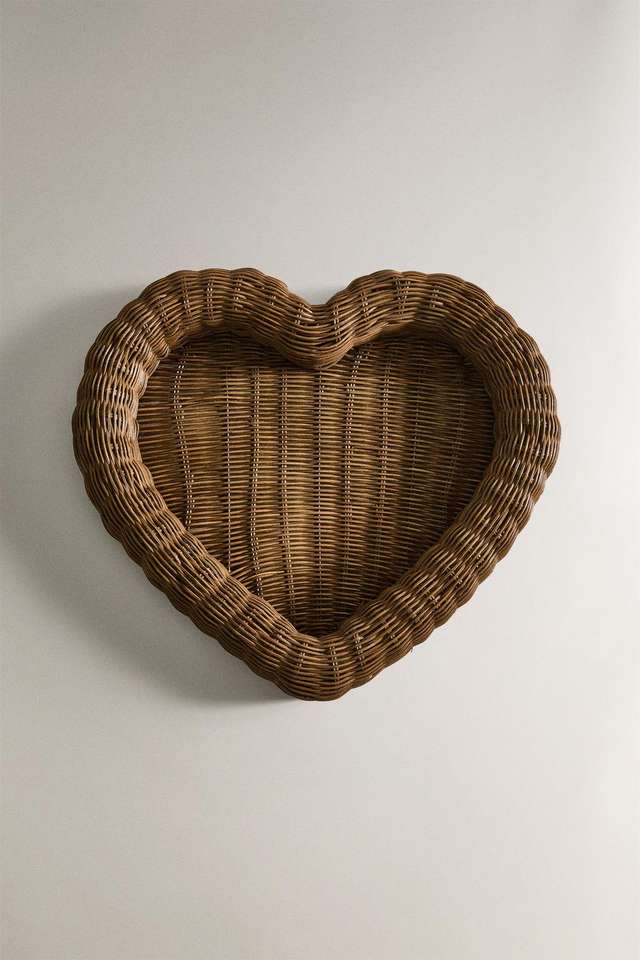 Bandeja de mimbre tejida a mano con forma de corazón, bandeja para servir desayuno, bandeja decorativa para decoración del hogar, mesa de café, exhibición en la cocina