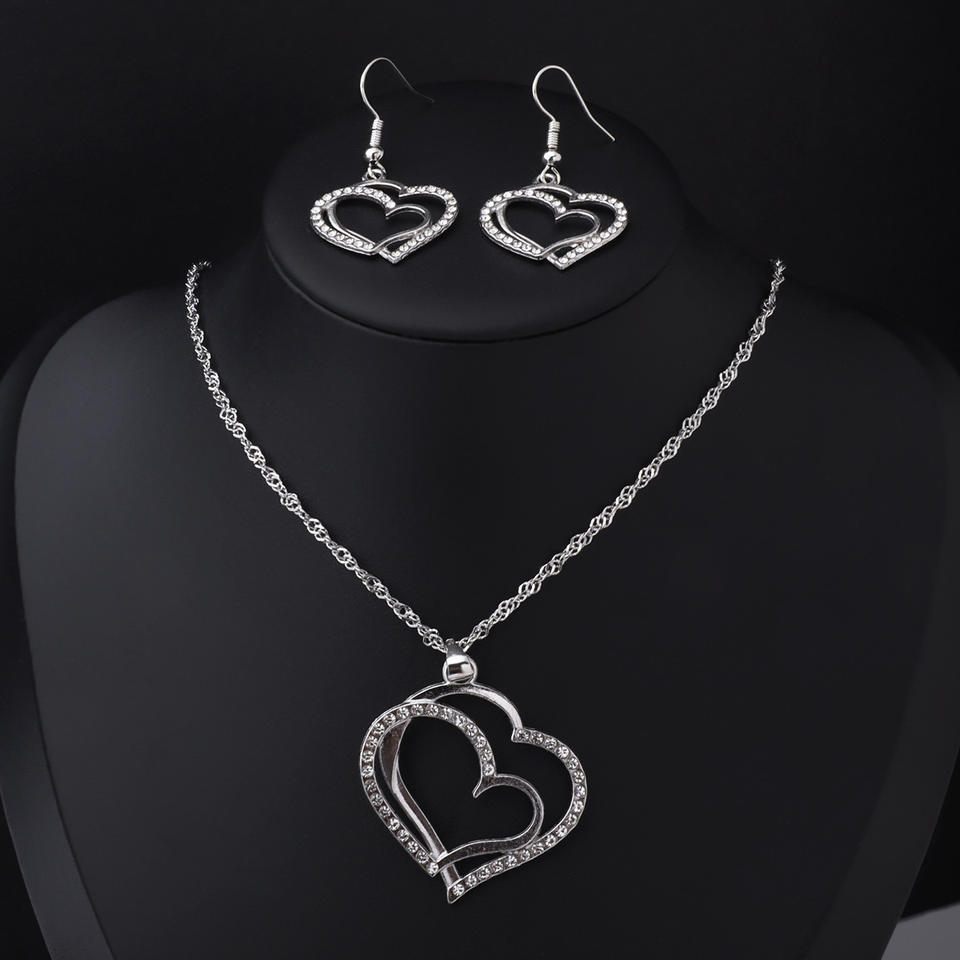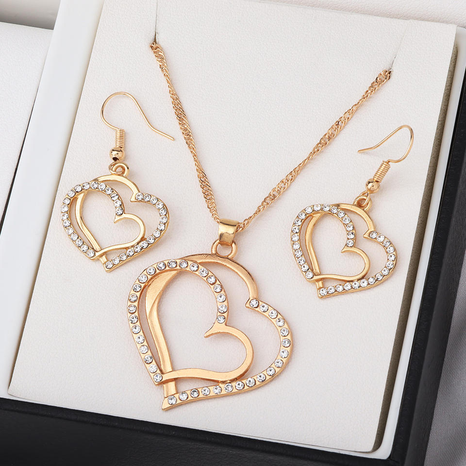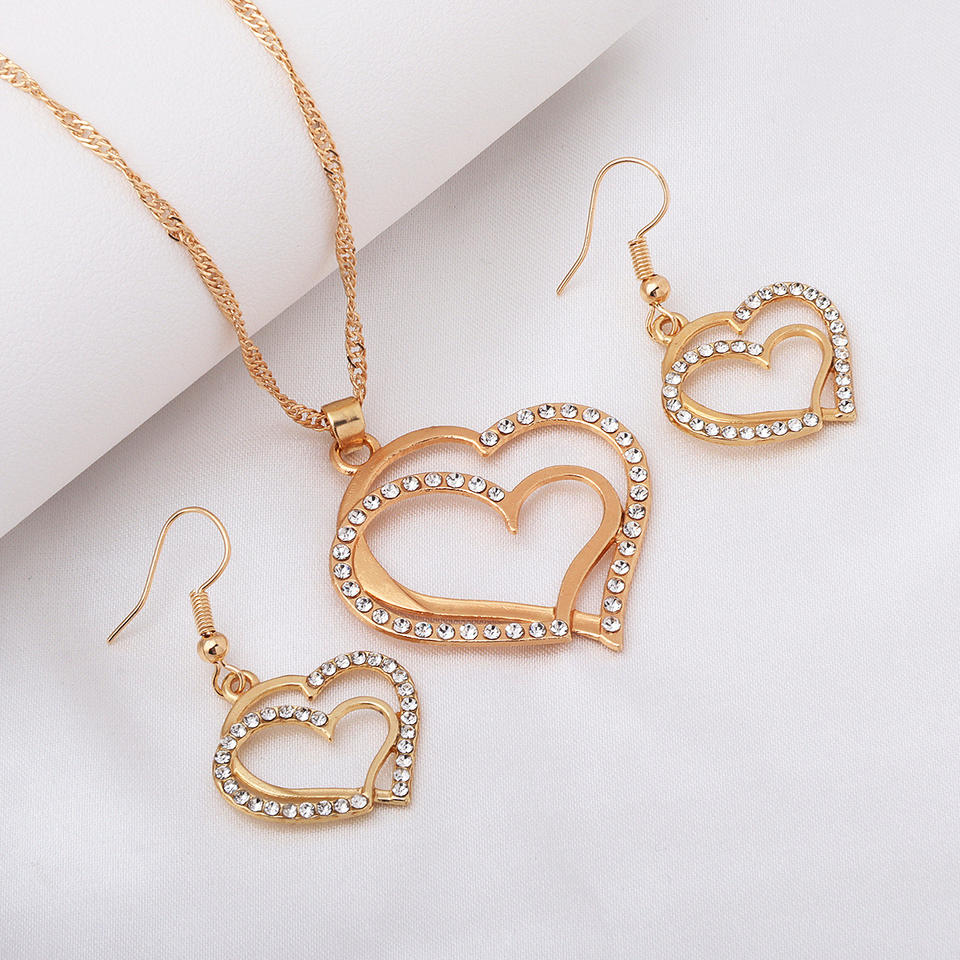 Juego de Joyería en Forma de Corazón, Chapado en Oro, Aleación de Zinc, Collar y Aretes para Boda, Accesorios Románticos de Moda para Mujer