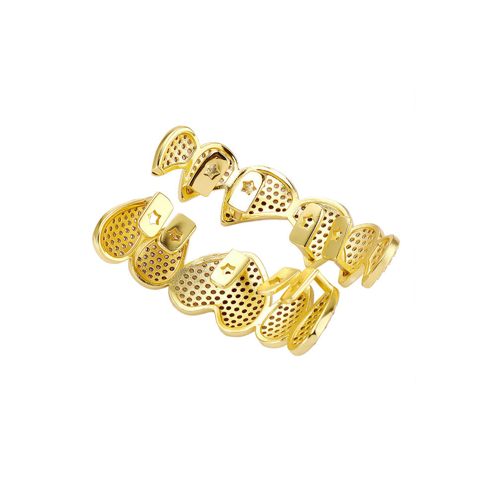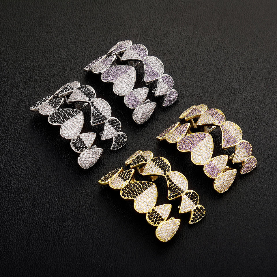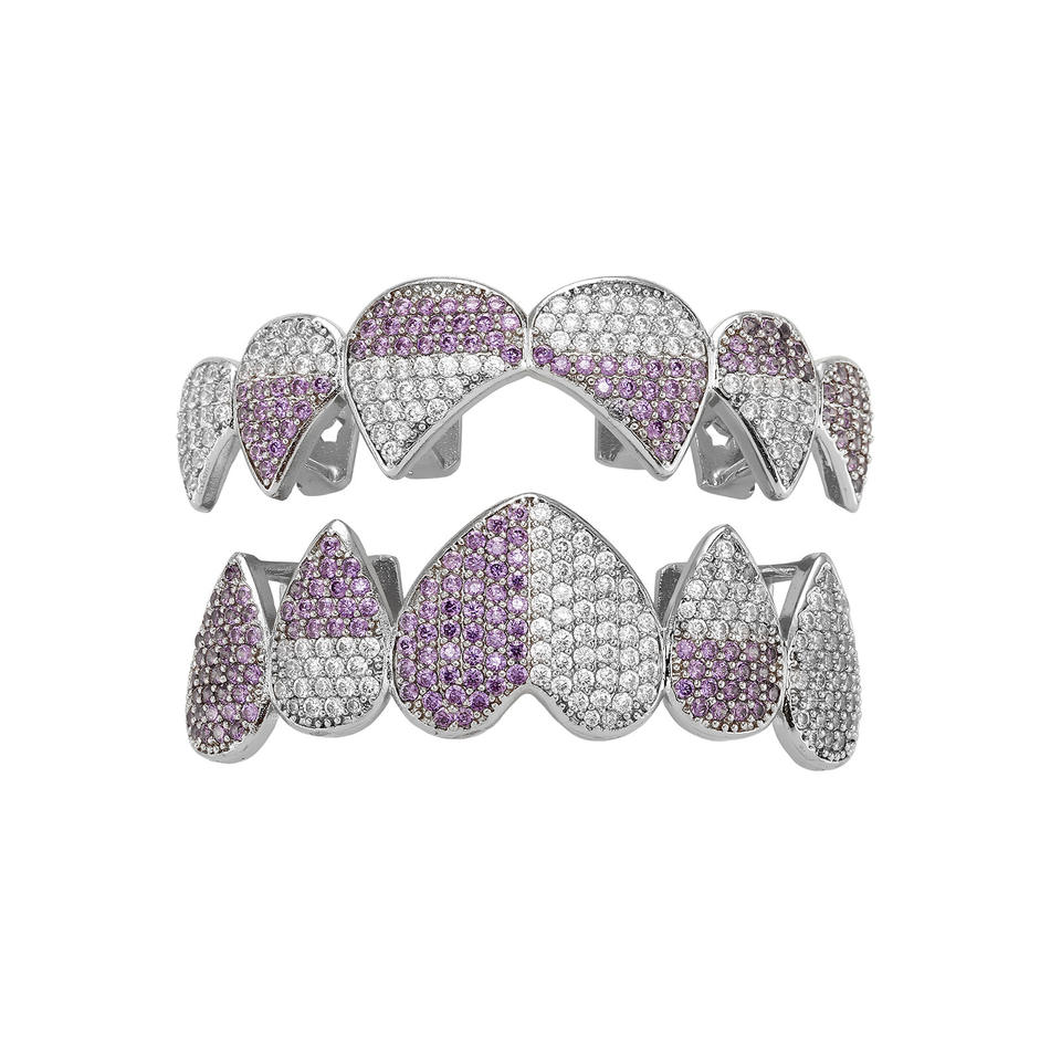 Grillz para dientes con forma de corazón, microincrustaciones de circonita, aleación de zinc, joyería hip hop para fiestas HCG 486