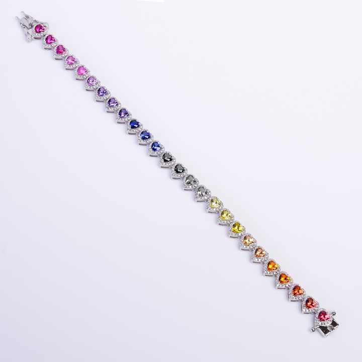 Pulsera de tenis multicolor con forma de corazón, de plata, con gemas multicolor, elegante, para mujer, regalo de amor