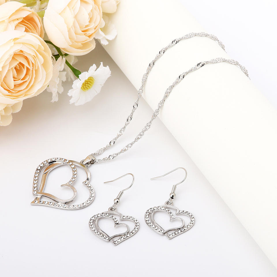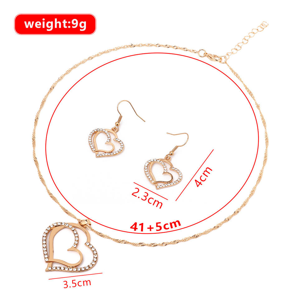 Conjunto de collar y aretes con forma de corazón y diamantes de imitación, joyería de moda para mujer, regalo para fiestas, conjunto de joyería de aleación de zinc y cristal.