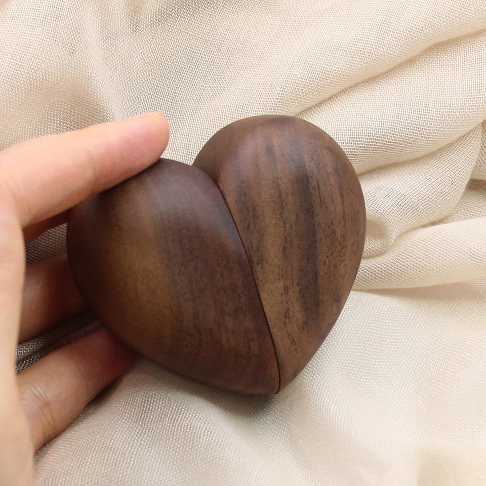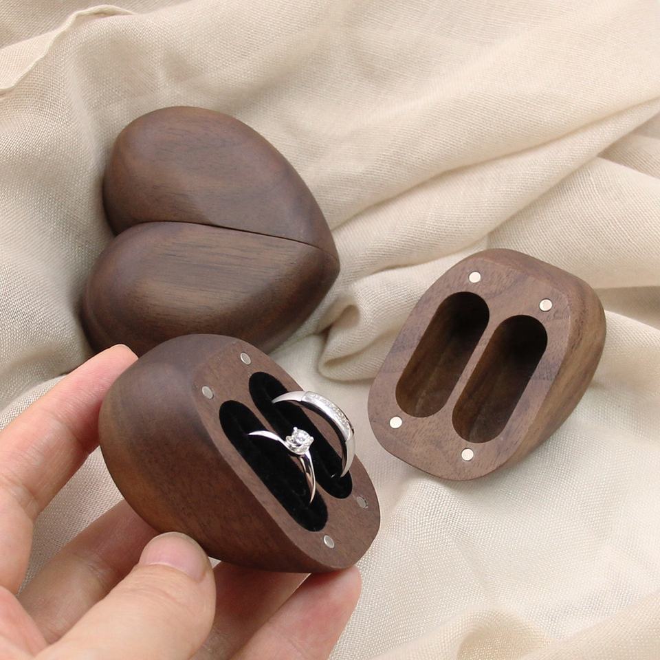 Caja de anillo de madera maciza con forma de corazón, caja de anillo de pareja de boda personalizada, regalo de 5 aniversario