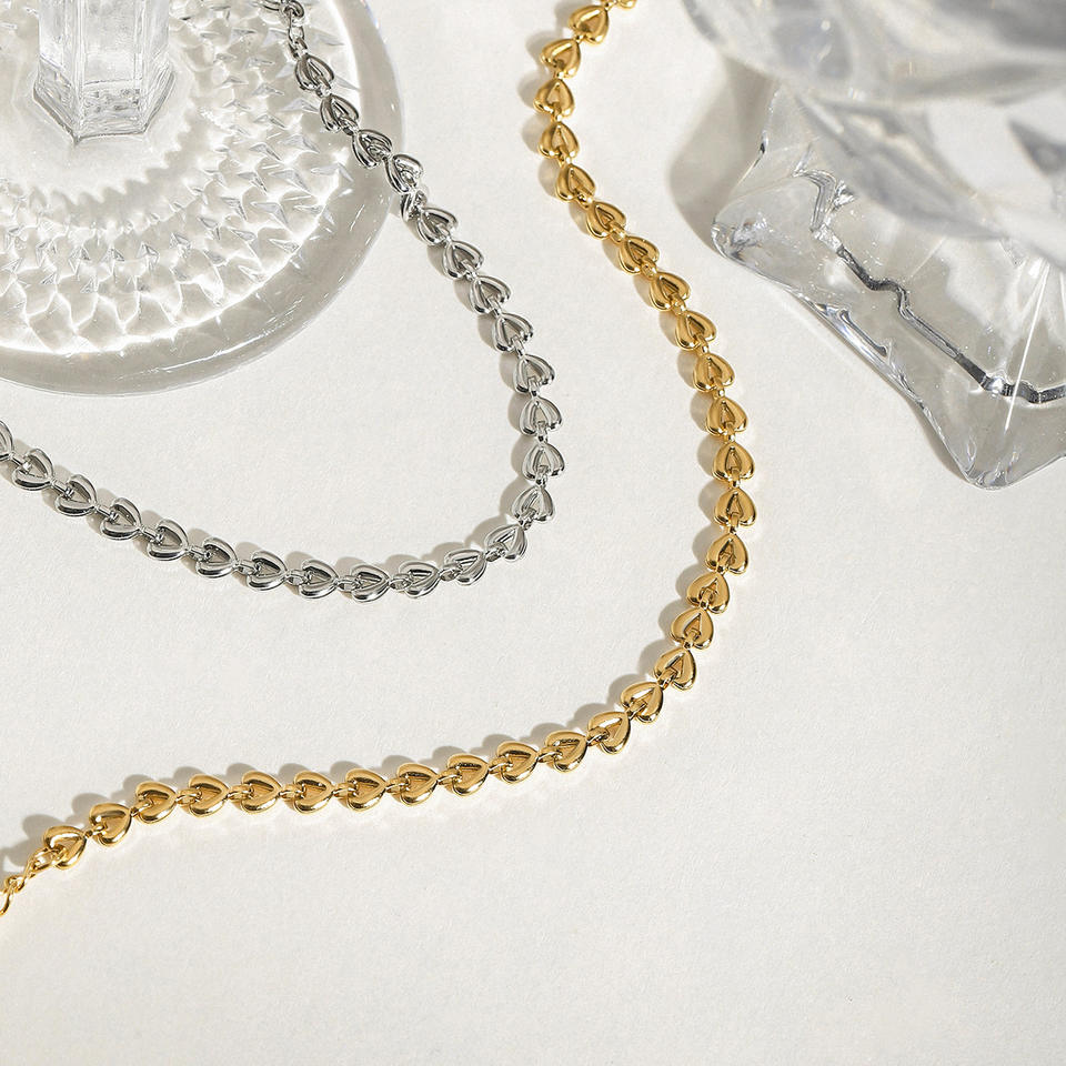 Pulsera de acero inoxidable con forma de corazón para mujer, joyería de uso diario, diseño de cadena, tono dorado y plateado