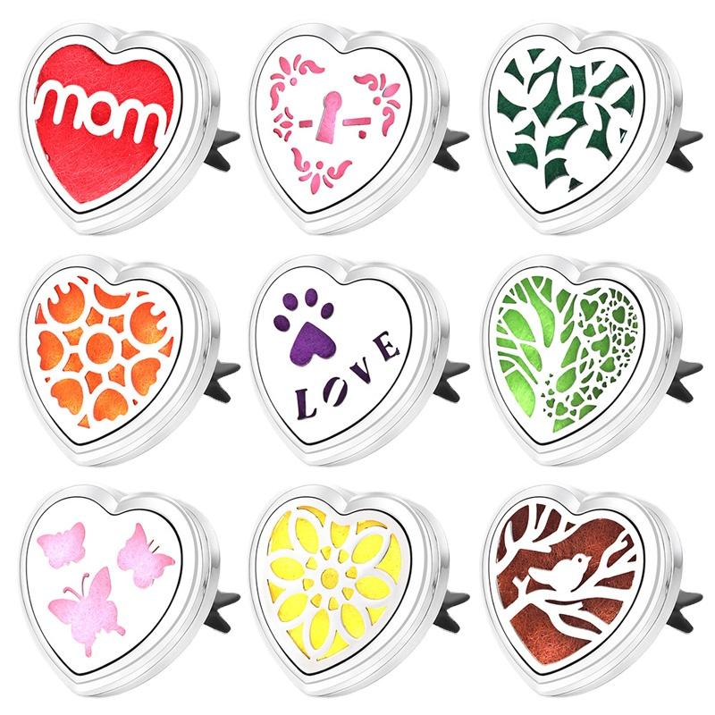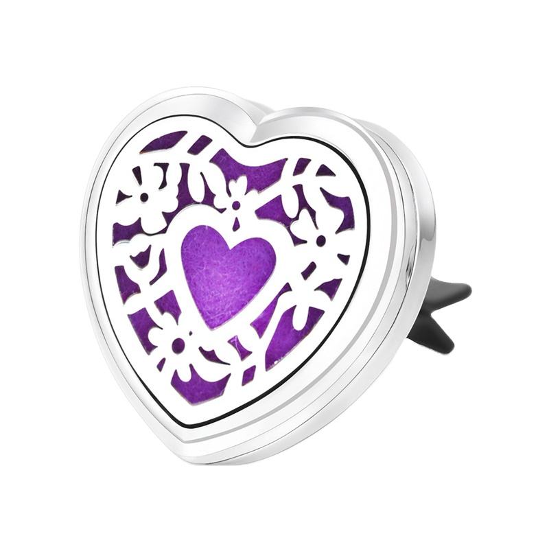 Difusor de Aromaterapia para Auto en Forma de Corazón, Clip para Rejilla de Ventilación, de Acero Inoxidable