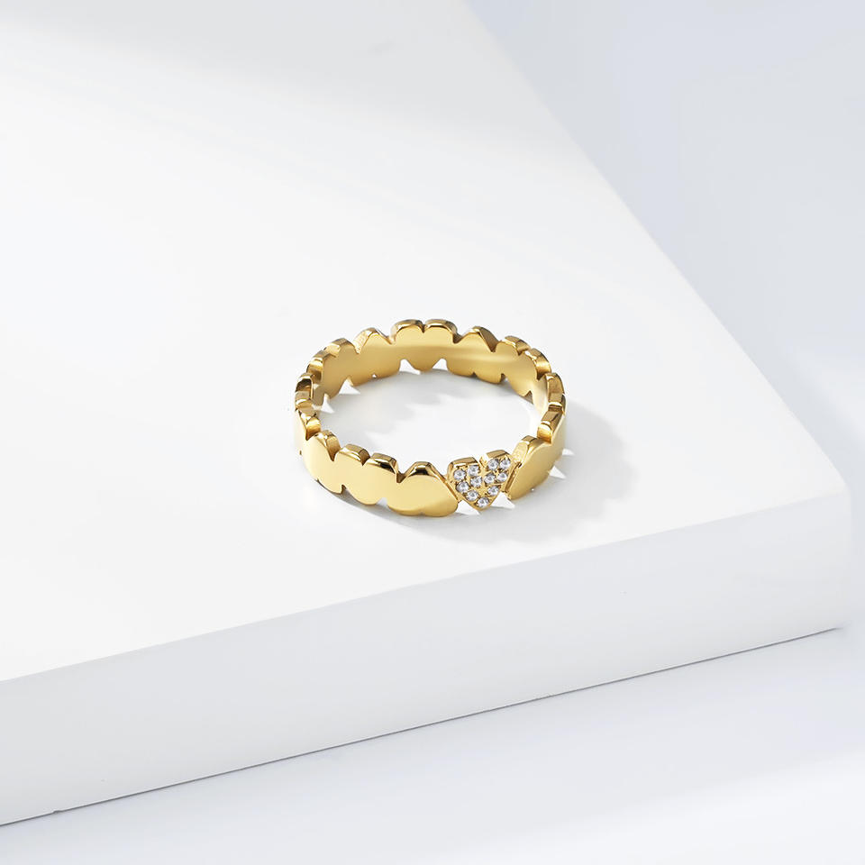 Anillo de acero de titanio en forma de corazón con microdiamantes pavé para mujer, joyería de regalo
