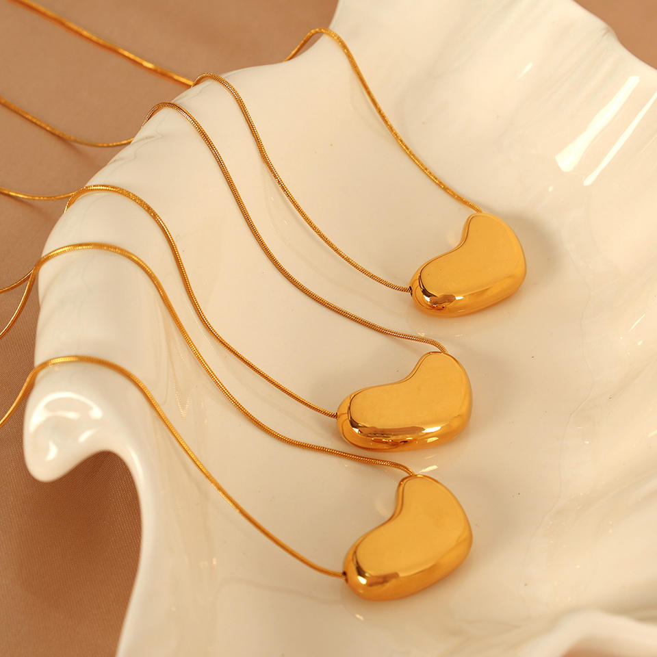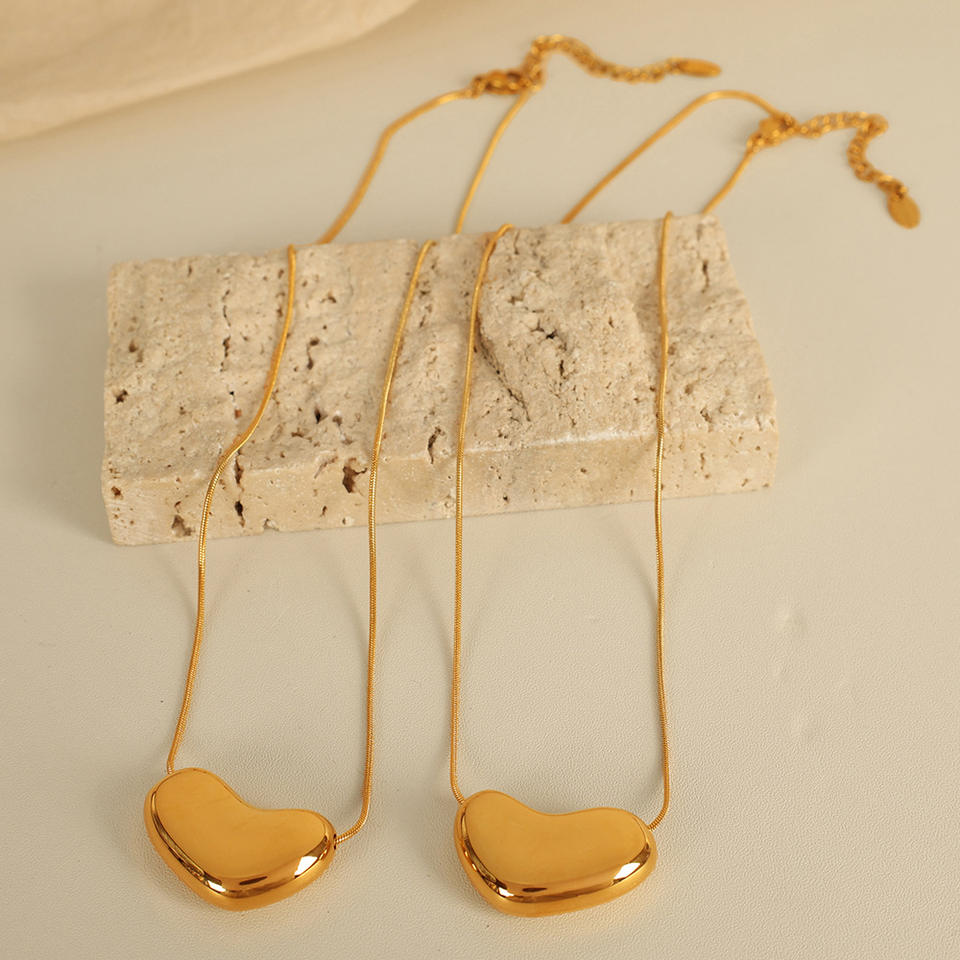 Collar de cadena de serpiente de acero de titanio con forma de corazón, colgante de acero inoxidable chapado en oro de 18k para mujer, joyería de regalo.