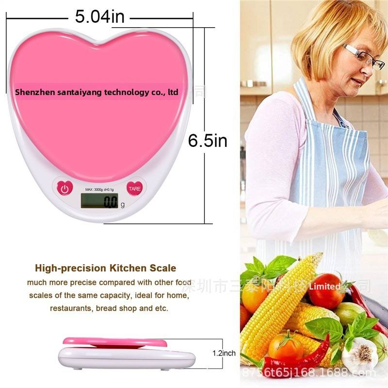 Báscula de Cocina Electrónica en Forma de Corazón 01, Pequeña, Portátil, a Pilas, Multifuncional, para Harina y Hierbas