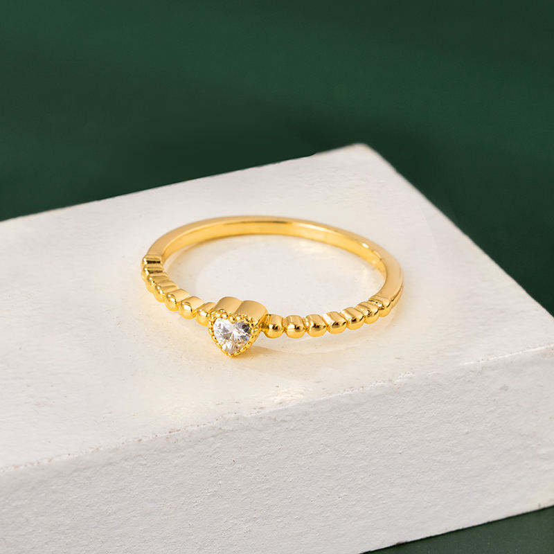 Anillo de mujer de latón con piedra de circón de colores dorados