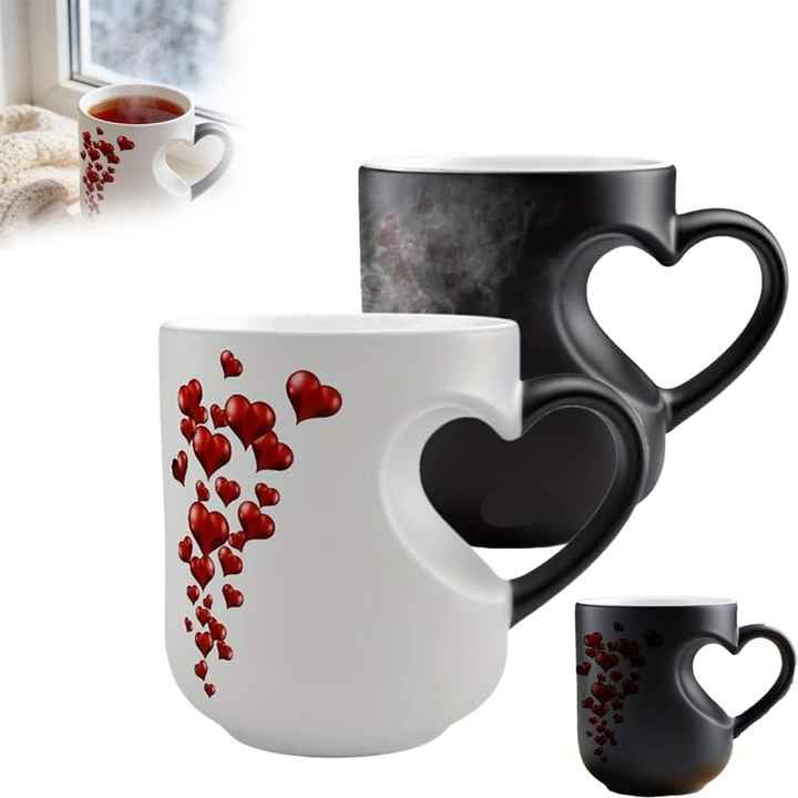 Taza Mágica de Cerámica con Forma de Corazón que Cambia de Color, 11 oz, Termocrómica, Diseño Divertido, Novedosa Taza de Café para el Día de San Valentín