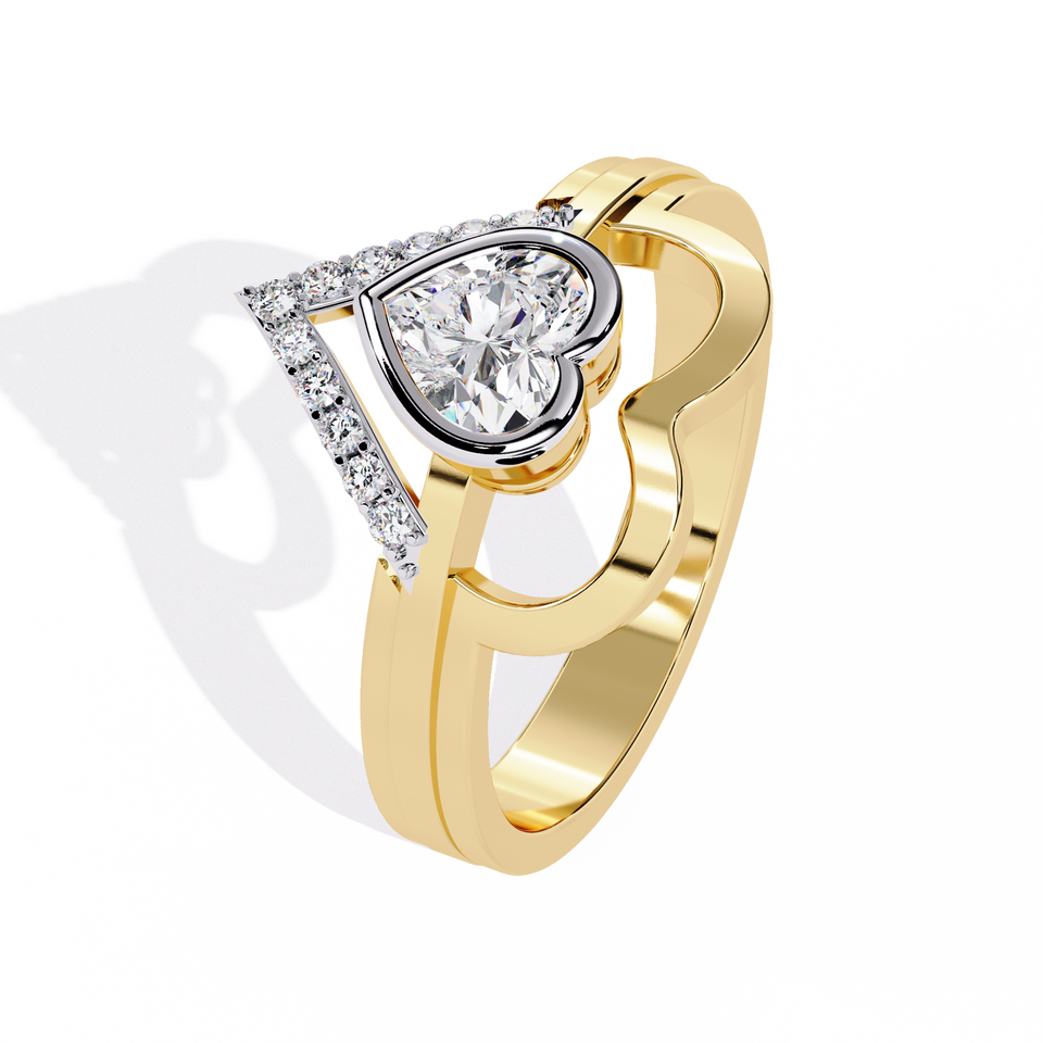 Anillo de diamante en forma de corazón 0,40 Ct en oro amarillo de 18 quilates Diamante natural Joyería personalizada Diseño indio hecho a mano para mujeres elegantes