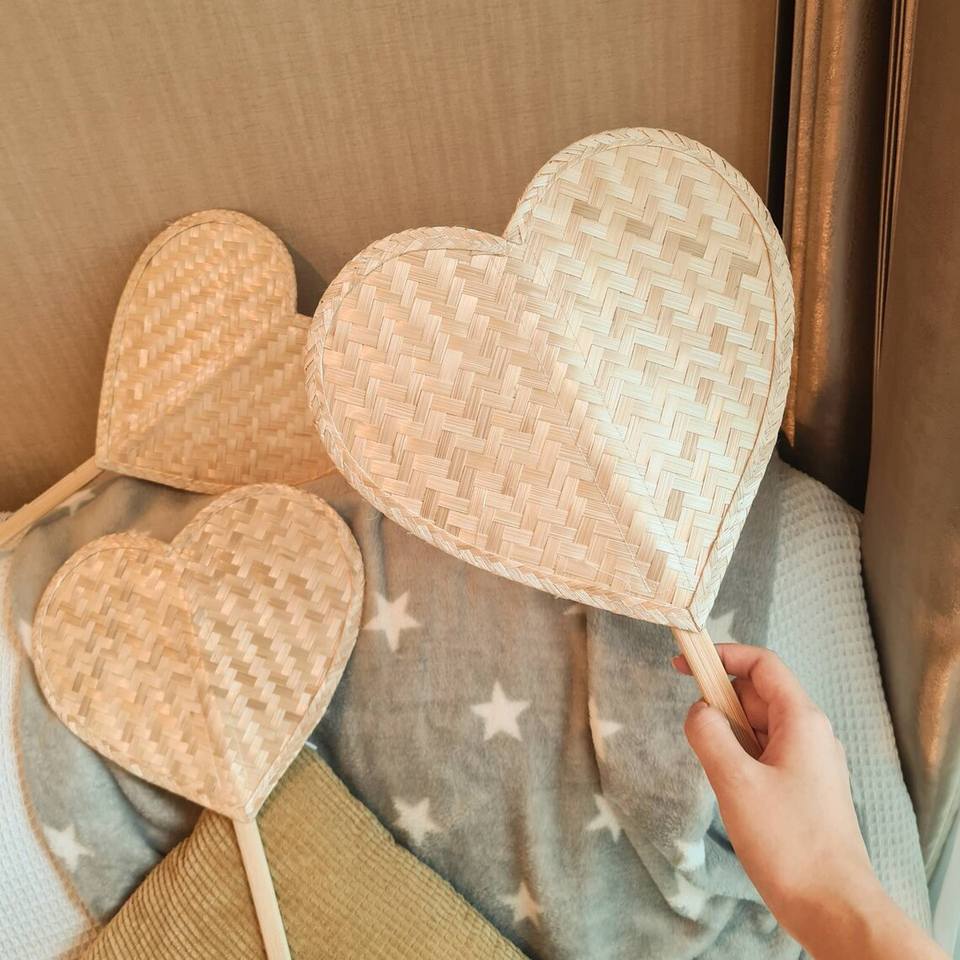 Abanico Decorativo Hecho a Mano en Forma de Corazón, Tamaño y Logotipo Personalizados, Abanicos Plegables de Bambú Natural Más Baratos