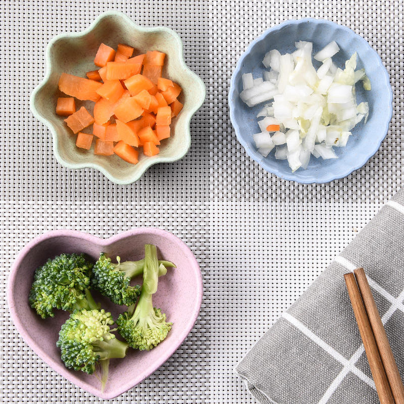 Juego de 3 platos para condimentos de plástico en forma de corazón, fáciles de limpiar, aptos para lavavajillas, para uso en la cocina