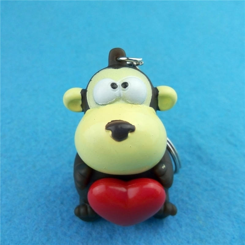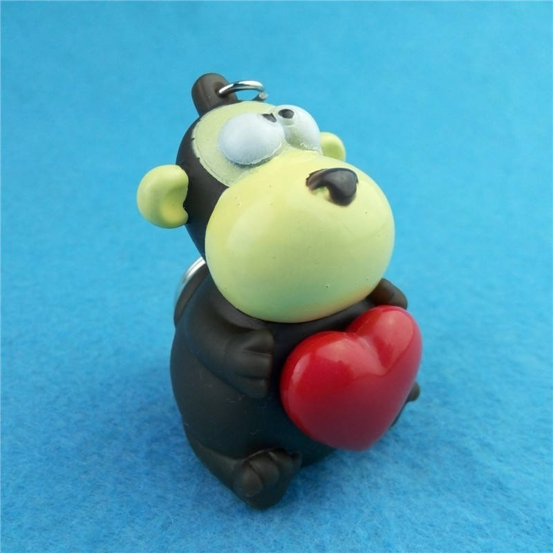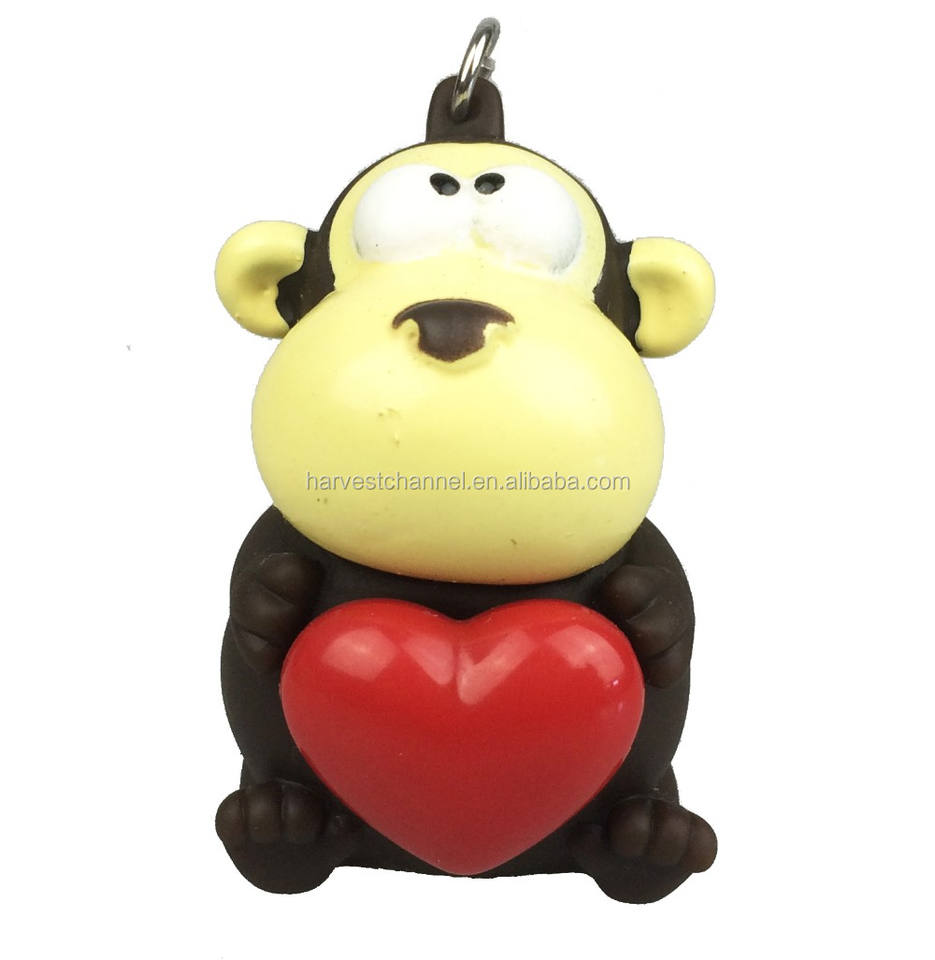 Llavero de PVC Suave en Forma de Corazón, Juguete de Vinilo de Mono de Dibujos Animados de 5 cm, Llavero Promocional de Entretenimiento con Diseño de Animal que se Despliega al Apretar