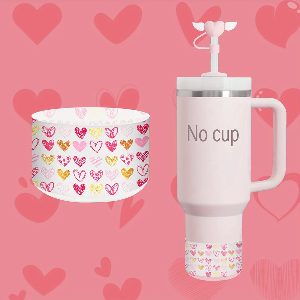 Hearts Bows Rabbits Flowers Prints Protector de silicona Tumbler Boot Funda de silicona antideslizante para 20-40 oz Stanley Cup Accesorio