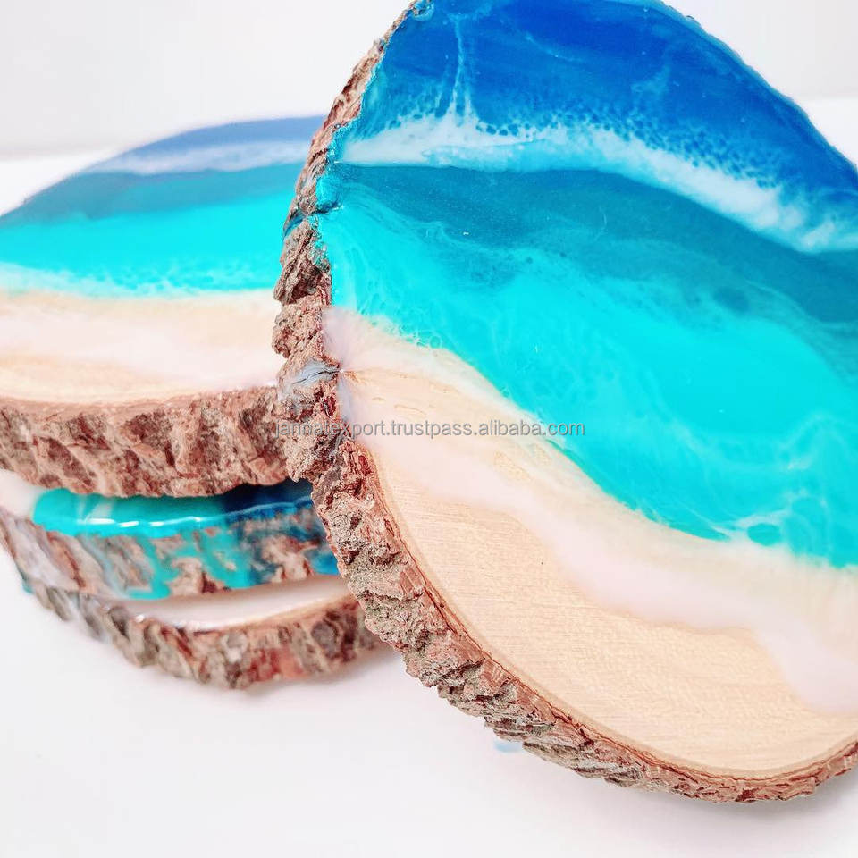 Posavasos de piedra de resina con aislamiento térmico, posavasos cuadrado hecho a mano de madera de olivo y resina para beber cerveza, café, té, posavasos