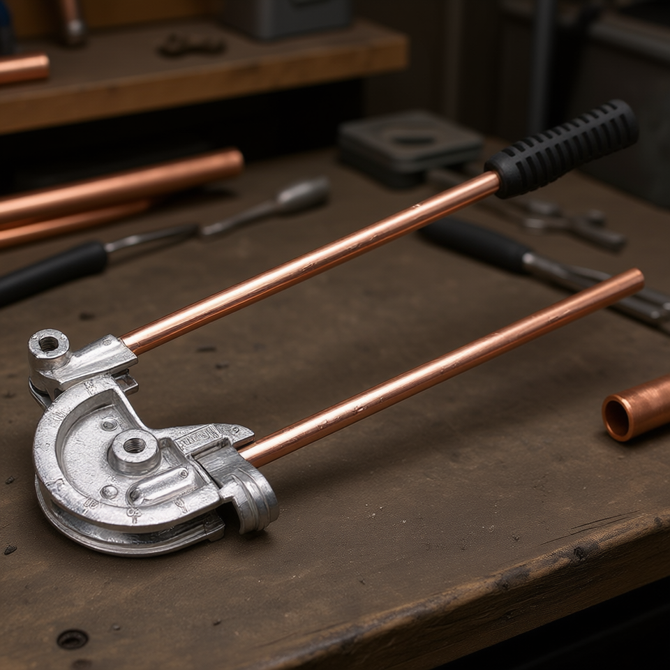 Doblador de tubos de cobre con abrazadera ajustable y mango ergonómico
