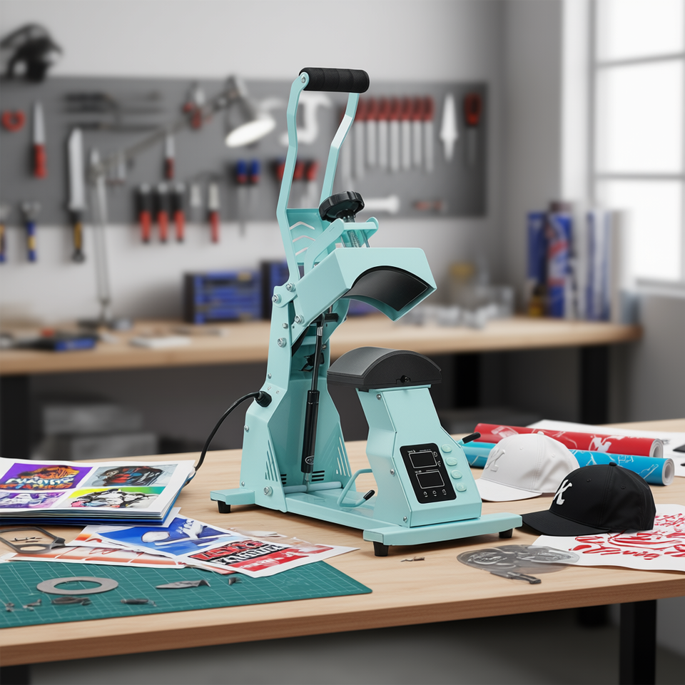 Máquina de Prensa de Calor Semiautomática Eléctrica con Placas Intercambiables para Gorras y HTV, 110V D0100X30W5X