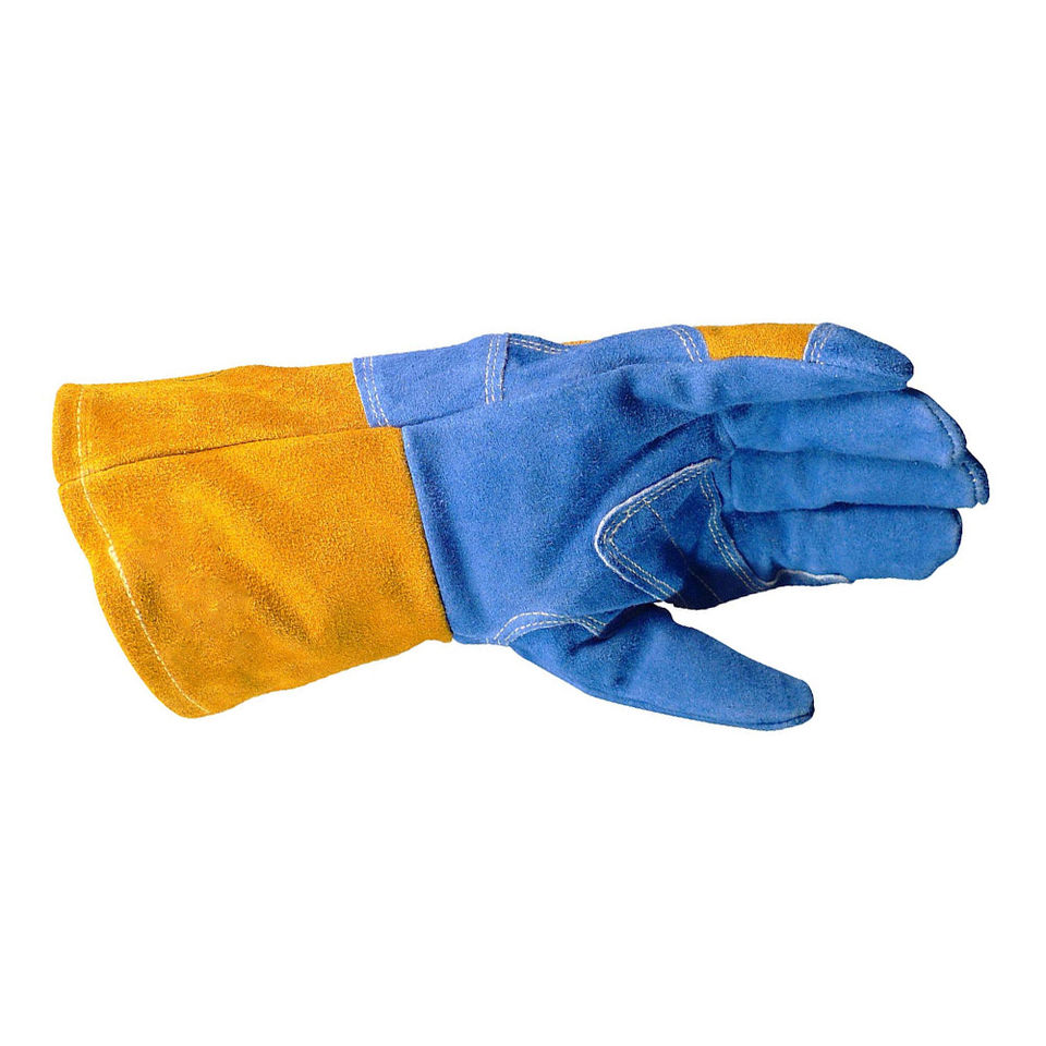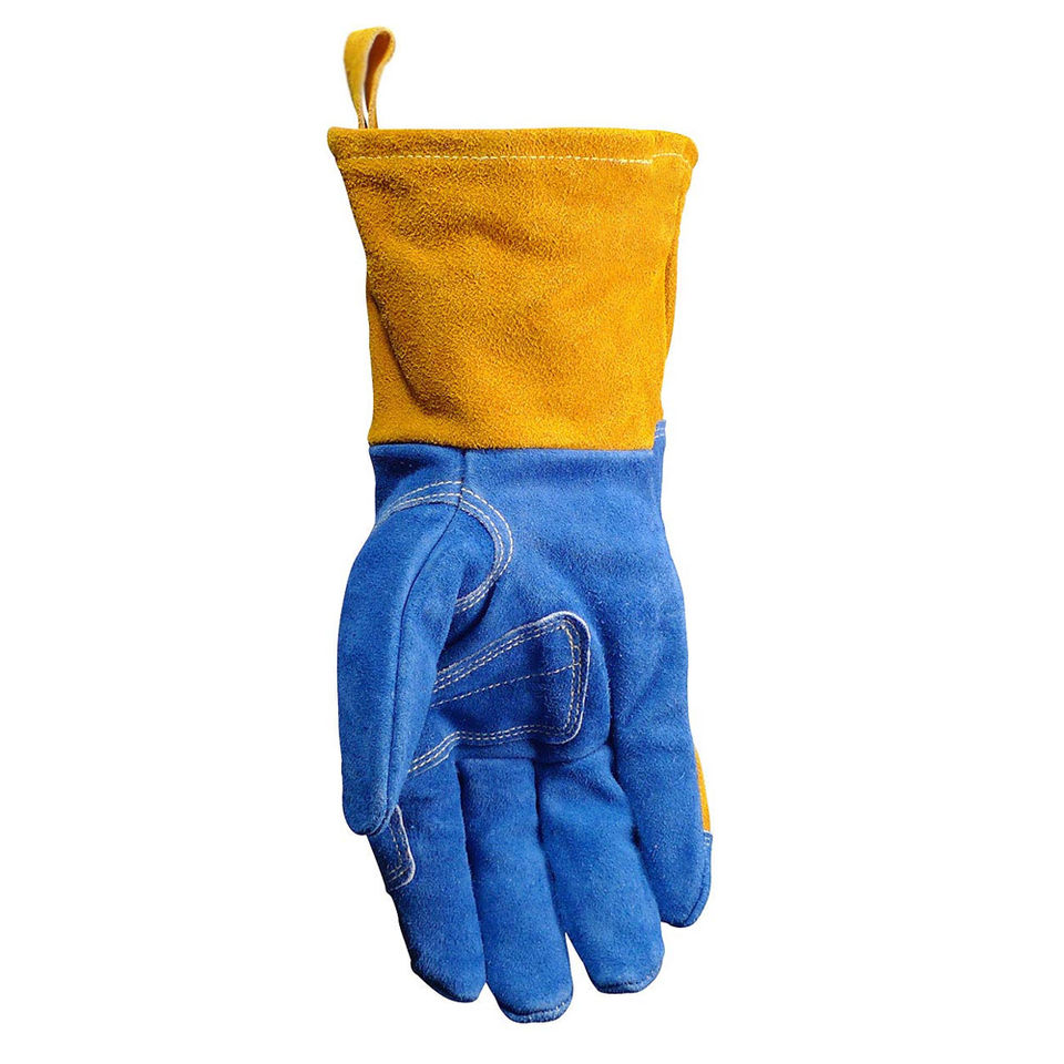 Guantes de trabajo de soldadura de seguridad para manos de cuero dividido de vaca reforzado resistente al calor Guantes de trabajo de soldador de material de alta calidad