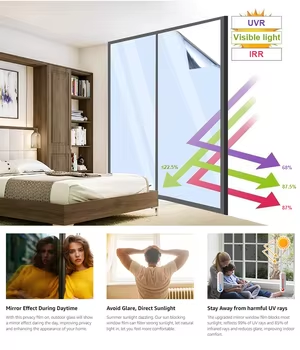 Espejo unidireccional con Control Solar de calor, bloqueo Uv, película reflectante térmica negra adhesiva estática para edificios de oficinas, ventanas de vidrio para el hogar