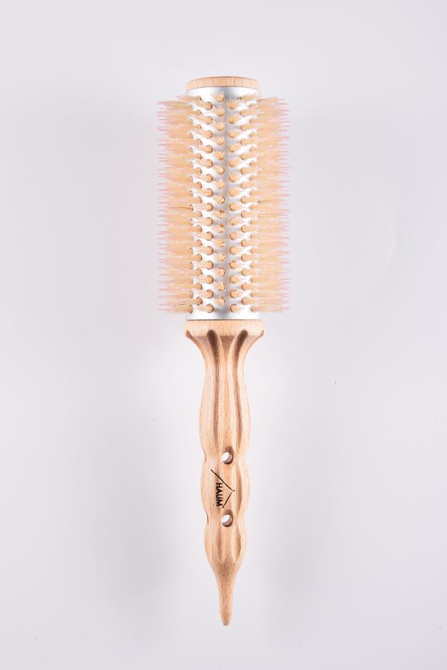 Peine redondo de cerámica Cerdas de jabalí Cepillo de rollo de estilo térmico con mango de madera de haya para Punta de flequillo y rizos interiores naturales con flecos