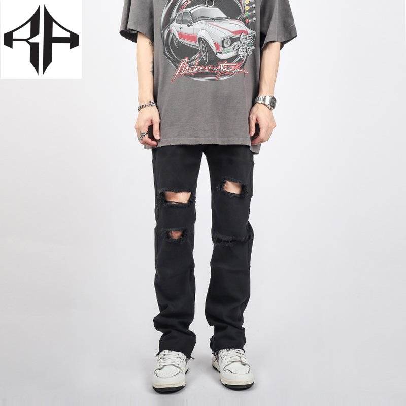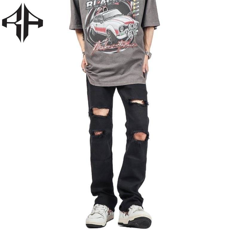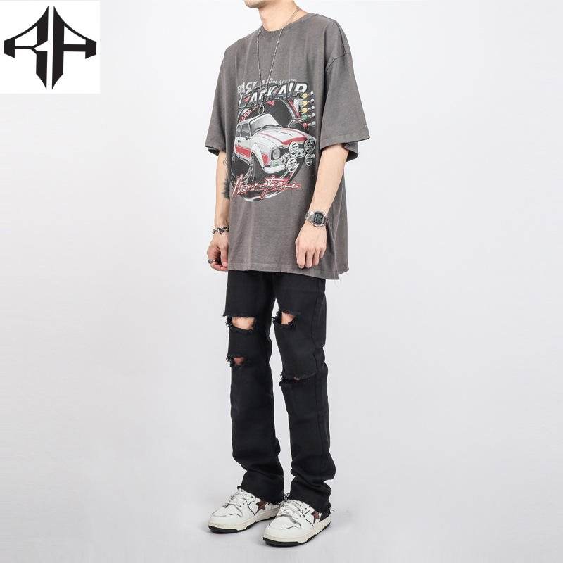 Vaqueros de hombre de algodón transpirable, con estampado por transferencia térmica, de tejido lavado, de corte recto y ancho, holgados, informales, de cintura media, de ajuste regular, para otoño