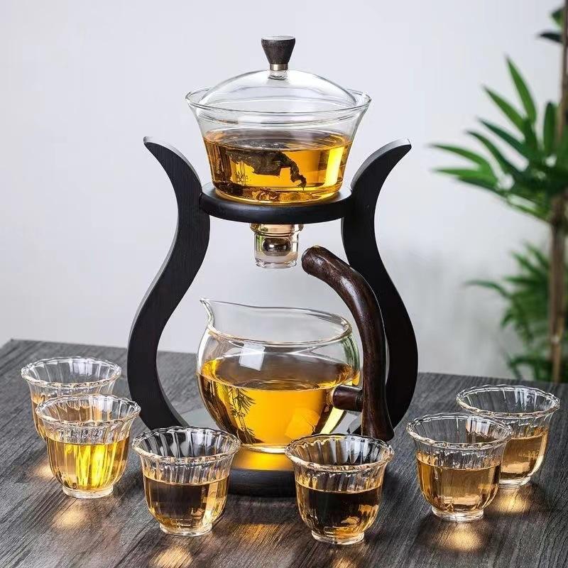 Juego de Té de Vidrio Resistente al Calor, Tapa Giratoria Magnética con Sistema de Extracción de Agua, Tetera Semiautomática, Tetera de Goteo Estilo Kung Fu