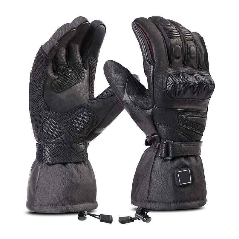 Guantes de esquí de cuero calentados de invierno para hombre, tecnología de pantalla táctil, aislamiento impermeable, cierre de cremallera de dedo completo para snowboard