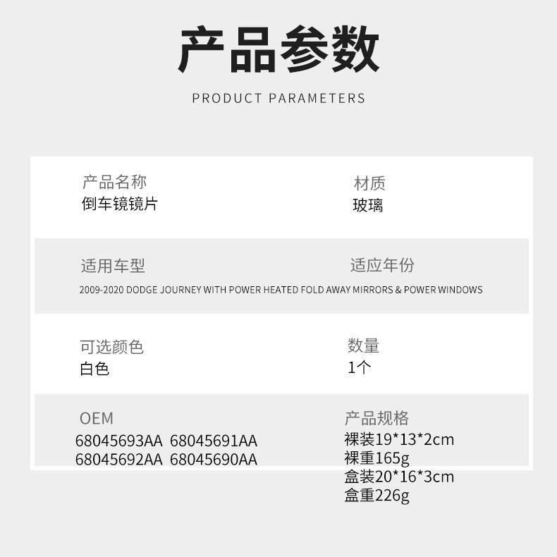 Cristal de Espejo Lateral Calefactable para Dodge Journey 2009-2020, Lado Izquierdo, Número de Pieza de Repuesto FP116B