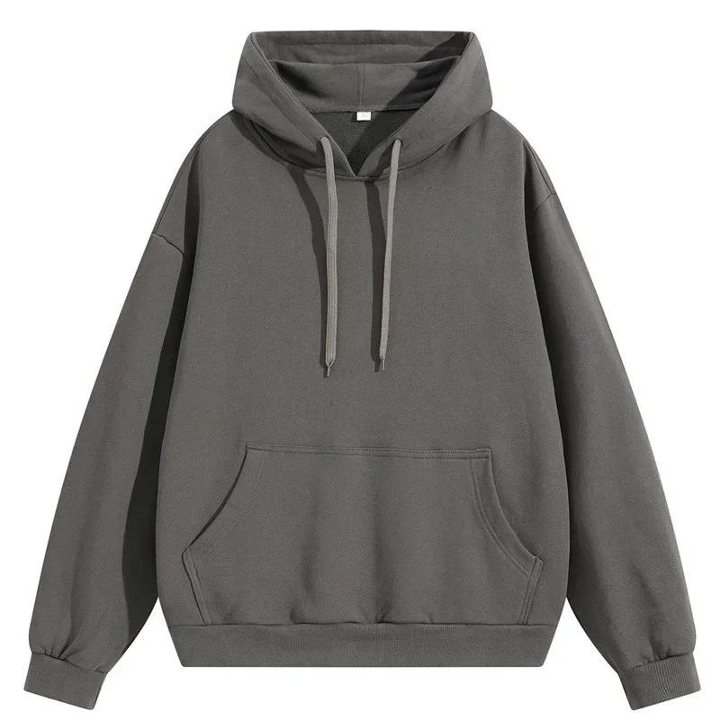 Heavy 300G Primavera y otoño Sudadera con capucha de color sólido Marca de moda para hombres Sudadera con capucha con cordón informal simple suelta