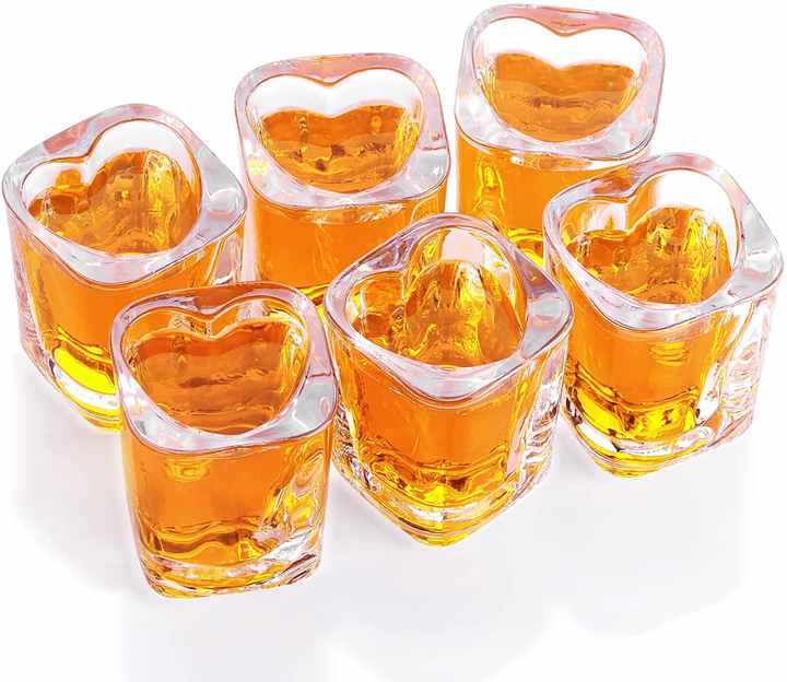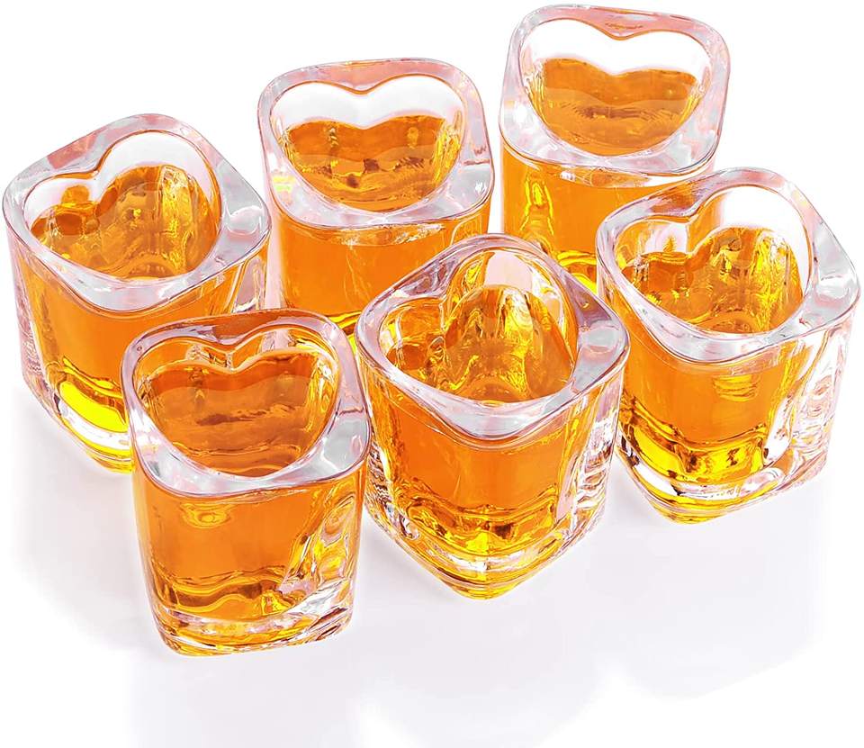 Juego de copas de vino de 2 onzas con base pesada en forma de corazón, Copas de chupito minimalistas elegantes, tazas y platillos de Tequila Sherry, paquete de 6